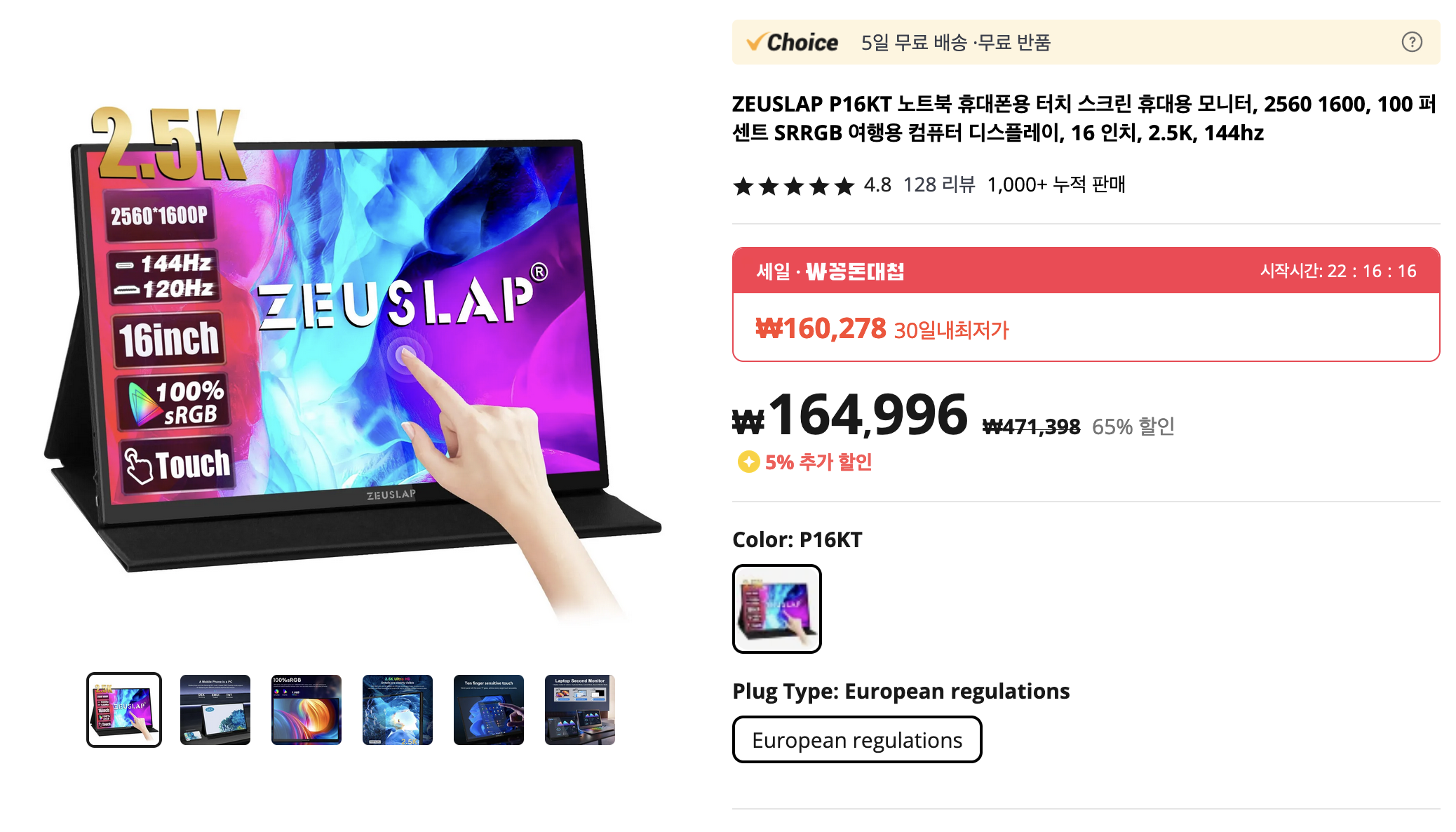 알리 익스프레스에서 할인을 할 때 마다 구입해야 하는 가장 만족도가 높은 제품입니다. 제우스랩 외장모니터는 유명하니 하나 정도는 꼭 구입해서 잘 활용하시길...