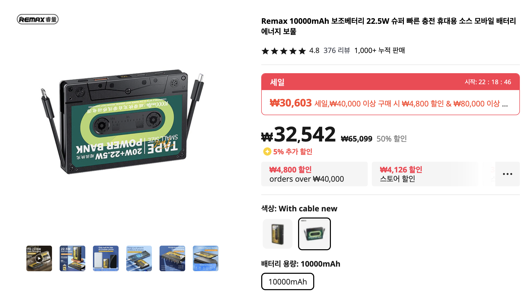 많은 보조배터리를 사용했지만 별로 만족스럽지 않았다면 카세트테이프 디자인을 가진 이 레트로 보조배터리를 사용해보세요 ㅎㅎ 저는 벌써 3개 정도 구입했는데, 녹색 제품은 양옆에 USB-C 케이블과 아이폰 라이트닝 케이블이 있어서 더 유용하게 쓸 수 있습니다. 용량도 10,000mAh로 충분한 편입니다.