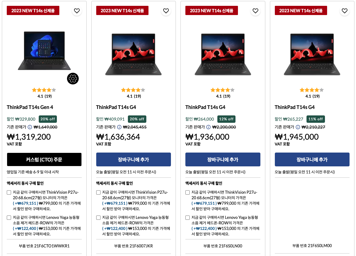 :: 씽크패드 T14 Gen4 (인텔) 구입하러 바로가기 ::