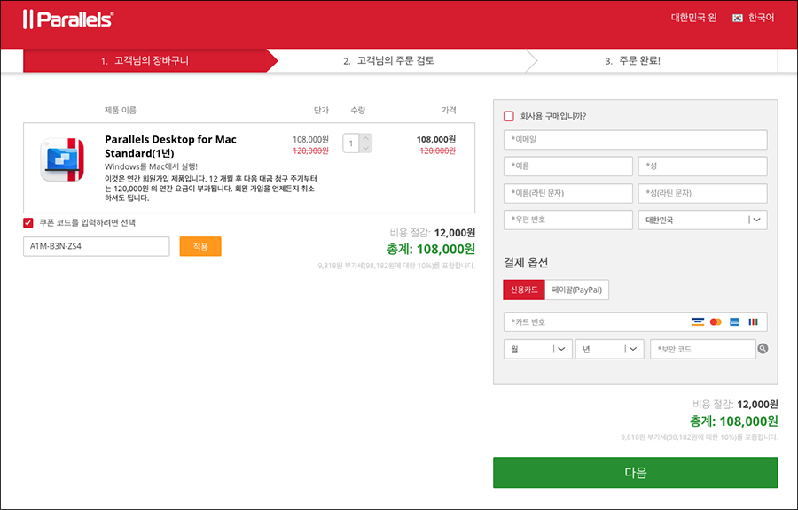 이번에 이벤트로 패러렐즈 데스크탑 Parallels Desktop이 10% 할인을 하고 있는데요. 아래의 쿠폰코드를 구입하실 때 사용하시면 됩니다.