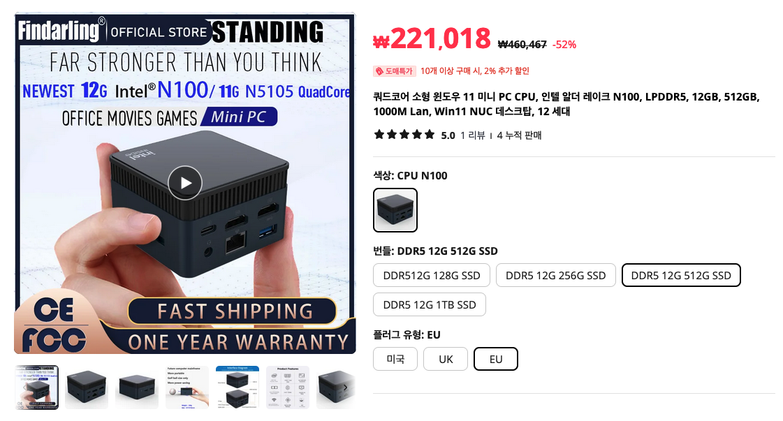 요거 하나만 있으면 사무용 PC는 따로 필요없을 정도로 성능이 괜찮은 미니PC입니다. 저도 이거 사고 집에 있는 컴퓨터들을 모두 처분해버렸습니다. :)