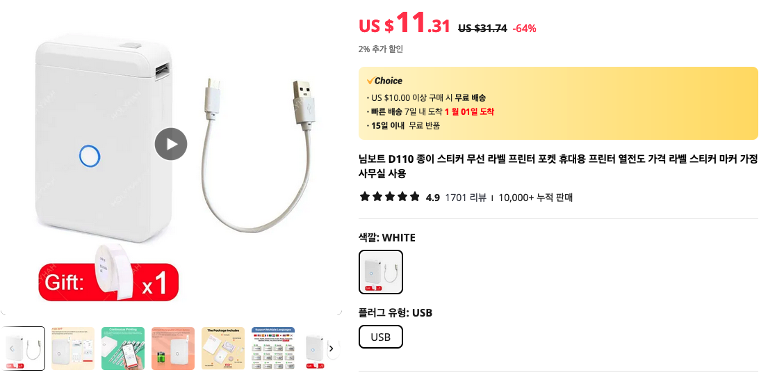 여러모로 도움이 되는 라벨 프린터 님보트 D110 입니다. 앱을 다운로드 받으면 한글도 지원하고, 국내에서도 사용자가 많은데, 직구하면 더 저렴하게 구입할 수 있죠 :)