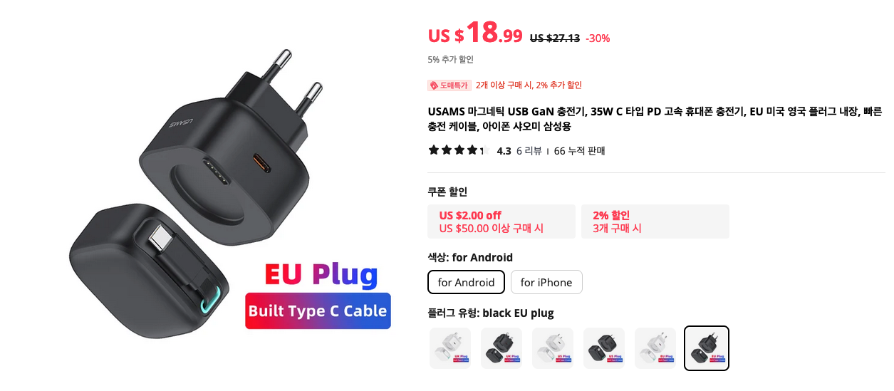 역시 아이디어가 돋보이는 USAMS 충전기 입니다. 위에 마그네틱으로 붙여서 길이 조절이 가능한 USB-C나 라이트닝 케이블을 사용할 수 있죠. 꼭 하나 갖고 싶은 스마트폰 충전기네요.
