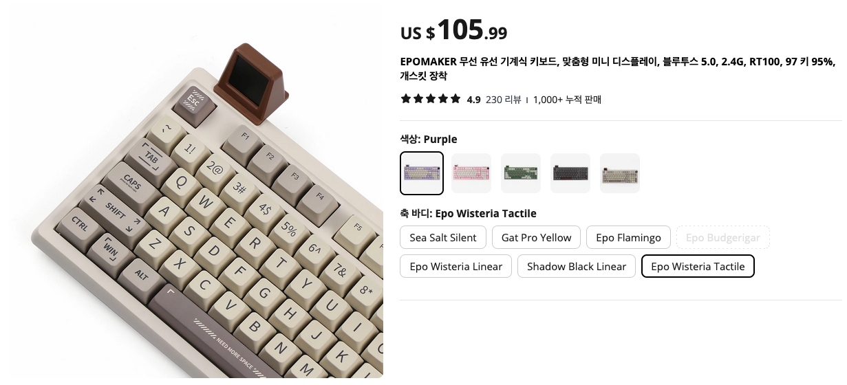 레트로한 디자인과 미니 디스플레이가 있는 Epomaker 기계식 키보드 입니다. 은근 인기가 많은 아이템이죠 :)