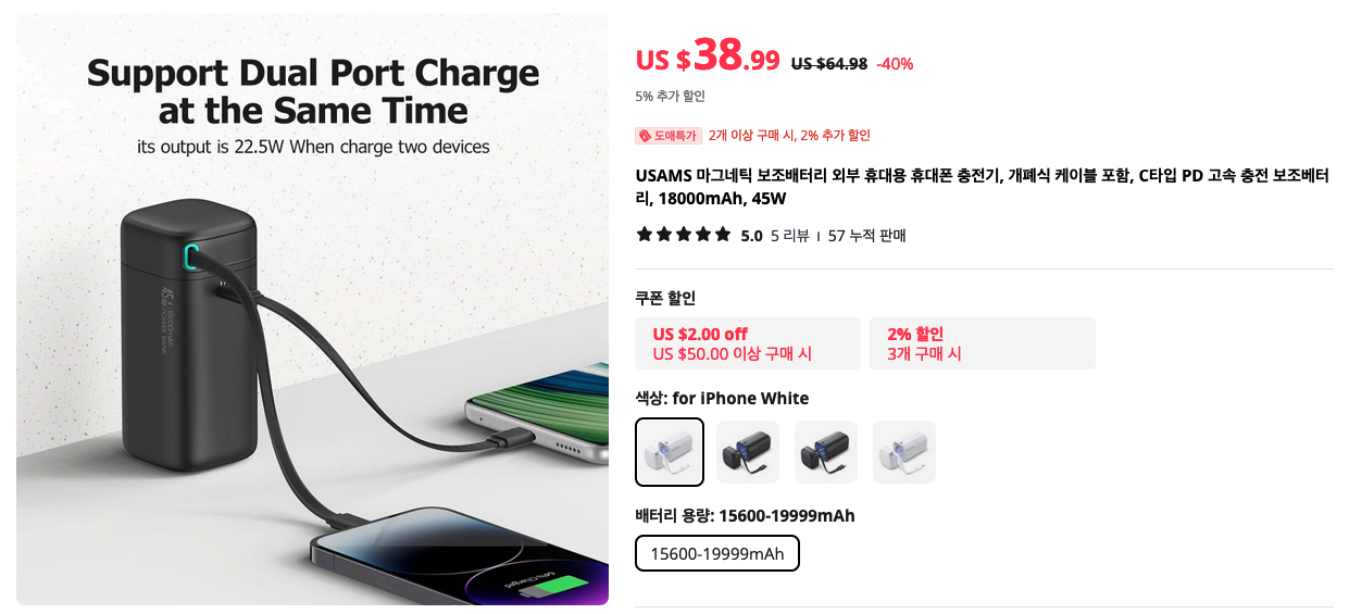 USAMS 45W 보조배터리
