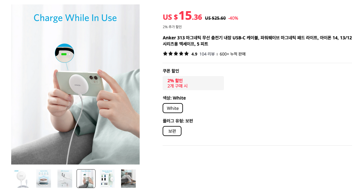 맥세이프 충전기를 원하시는 분들이라면 앤커의 이 제품도 깔끔하고 매우 좋은 구성입니다. 길이도 1.5m 정도로 긴 편이라서 인기가 있는 아이템이죠.
