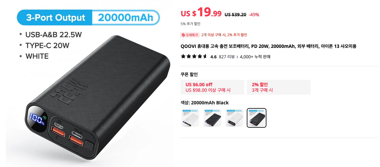 이번에는 개인적으로 관심이 많으 IT제품들의 인기템들을 모아봤습니다. 먼저 보조배터리 제품들 부터 시작합니다.