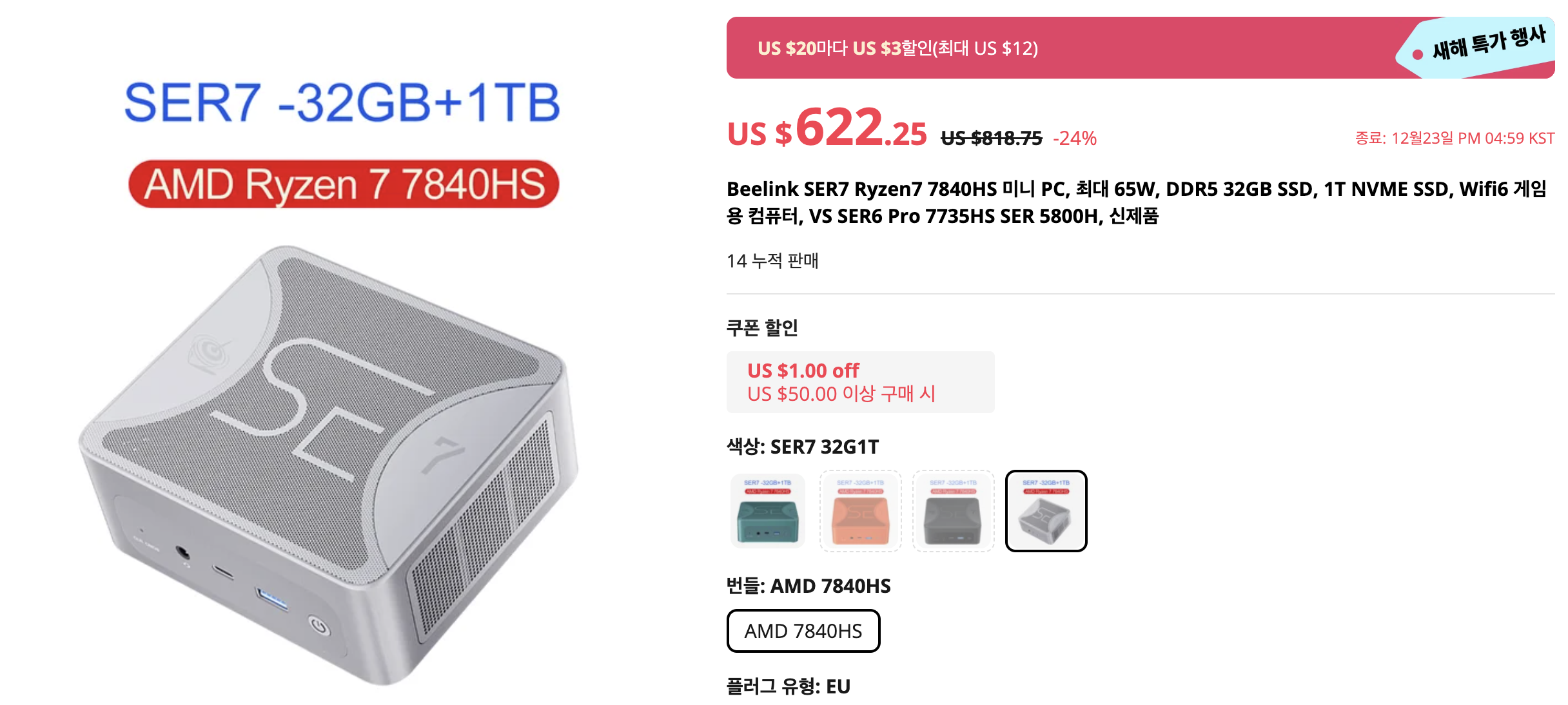 고사양 게이밍 PC를 원하신다면 AMD 7840HS 프로세서 탑재한 Beelink의 SER7 시리즈 구입을 생각해보셔도 좋습니다. 가격 만큼의 성능을 내주는 컴퓨터 입니다.