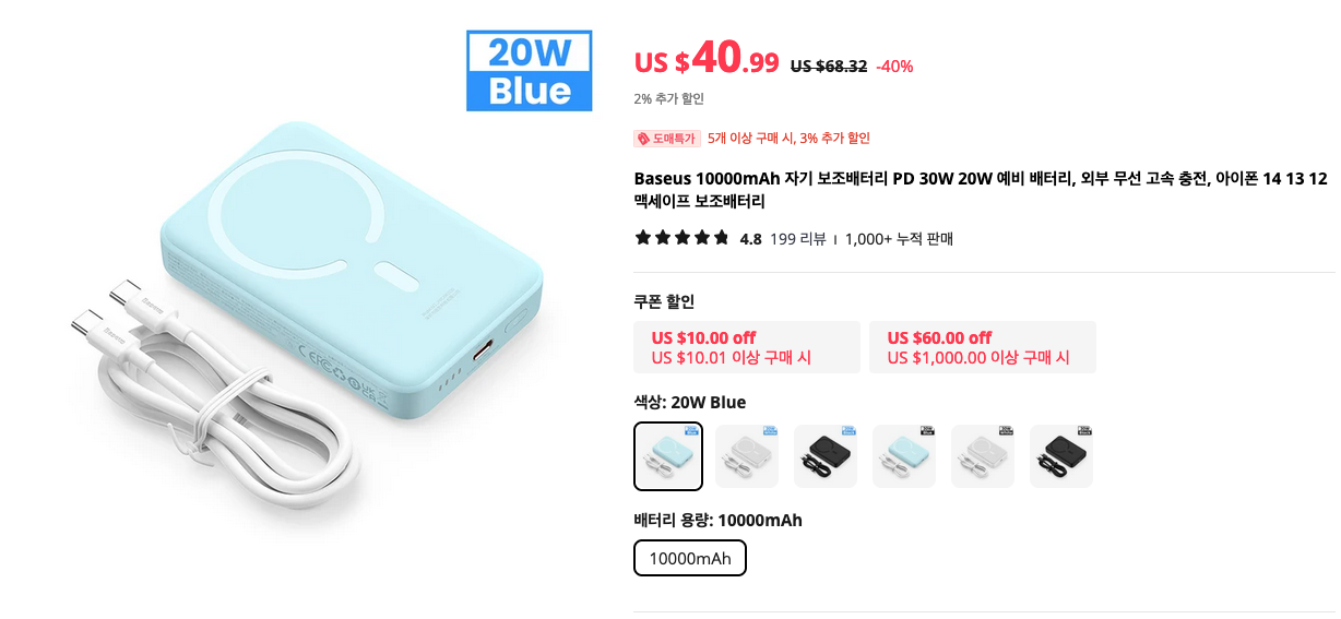 아이폰을 사용한다면 맥세이프 무선 충전 보조배터리를 욕심내어 볼만 합니다. 베이스어스 멕세이프 보조배터리는 디자인도 예뻐서 인기가 있죠. ㅎㅎ