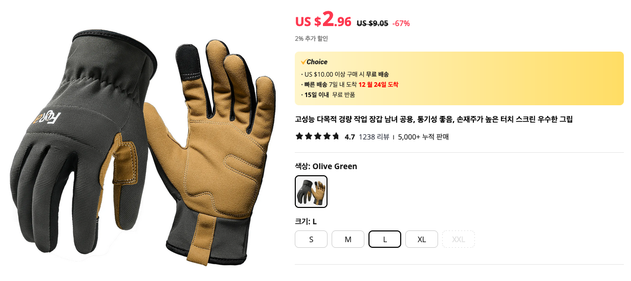 알리에서 판매량이 높고 인기가 있는 장갑입니다. 판매량이 높은 이유가 있겠죠?
