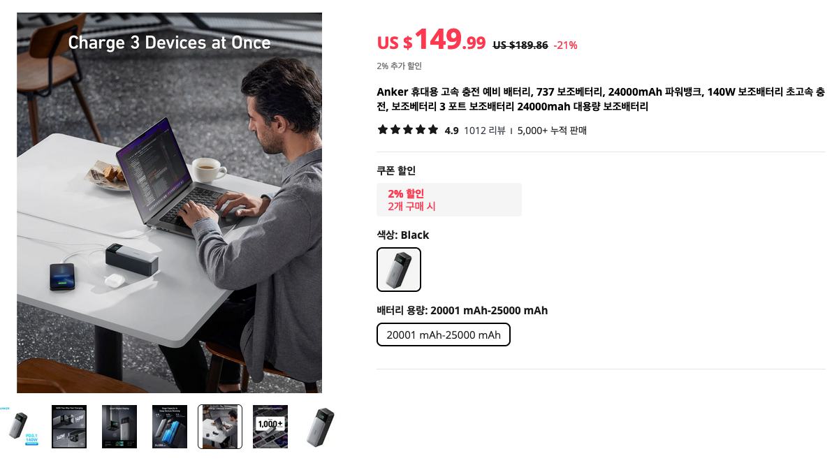최근에는 은근 대용량 보조배터리들이 인기인듯 합니다. 노트북도 충전할 수 있는 USD PD 고출력 제품들인데요. Ugreen은 꽤 퀄리티가 좋기로 유명하죠. 2만 mAh이상의 보조배터리를 찾으신다면 선택해보시기 바랍니다.