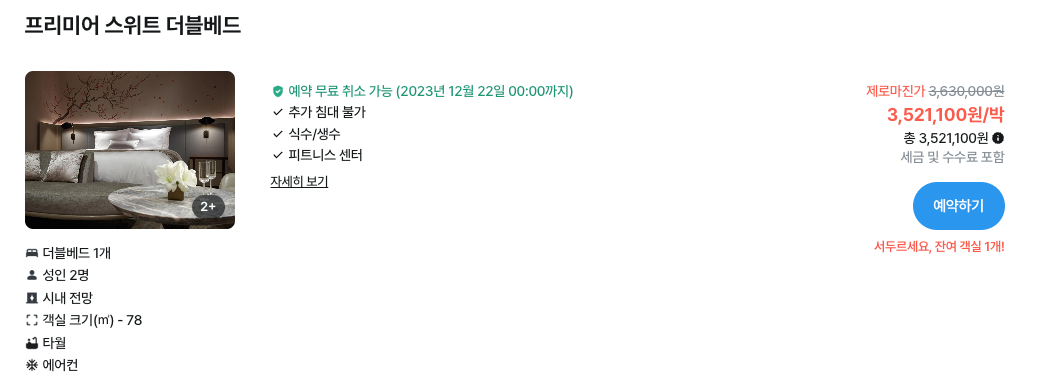마지막으로 프리미어 스위트 룸의 가격을 알아보았습니다.