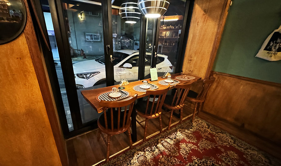 일단 좌석은 4명씩 앉을 수 있는 자리가 2개 있으니까 총 8명 정도가 앉을 수 있는 듯 합니다. 바 테이블 위주로 되어 있어서, 한국이 아닌 더 이국적인 느낌이 났던 것 같네요.