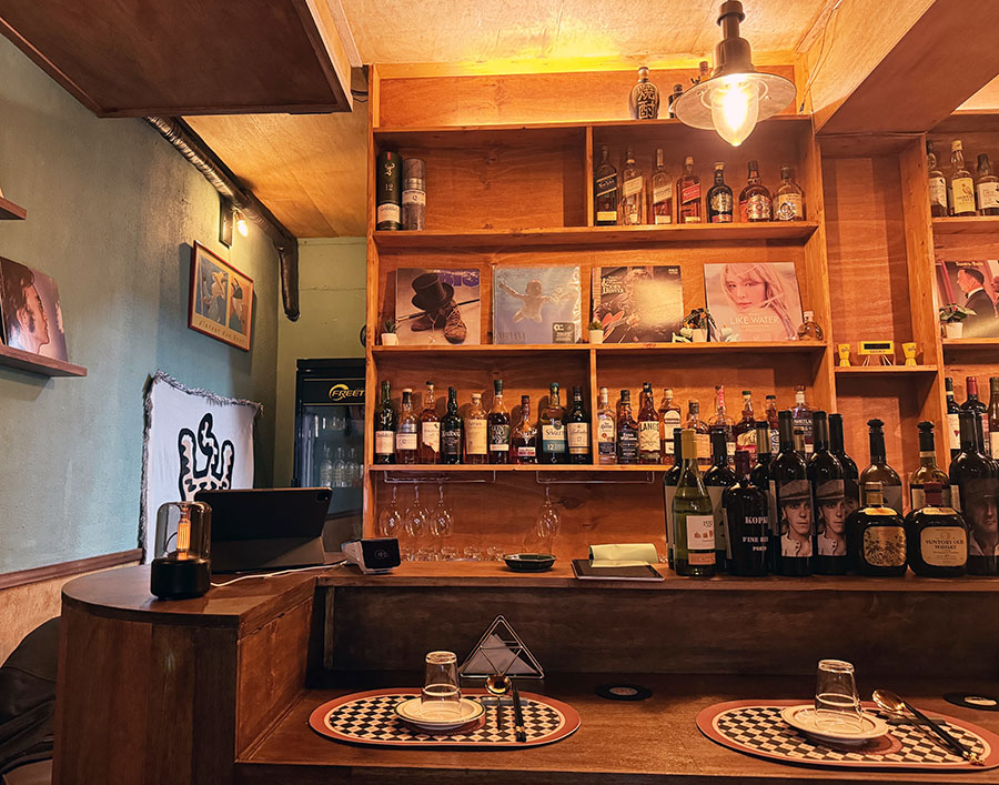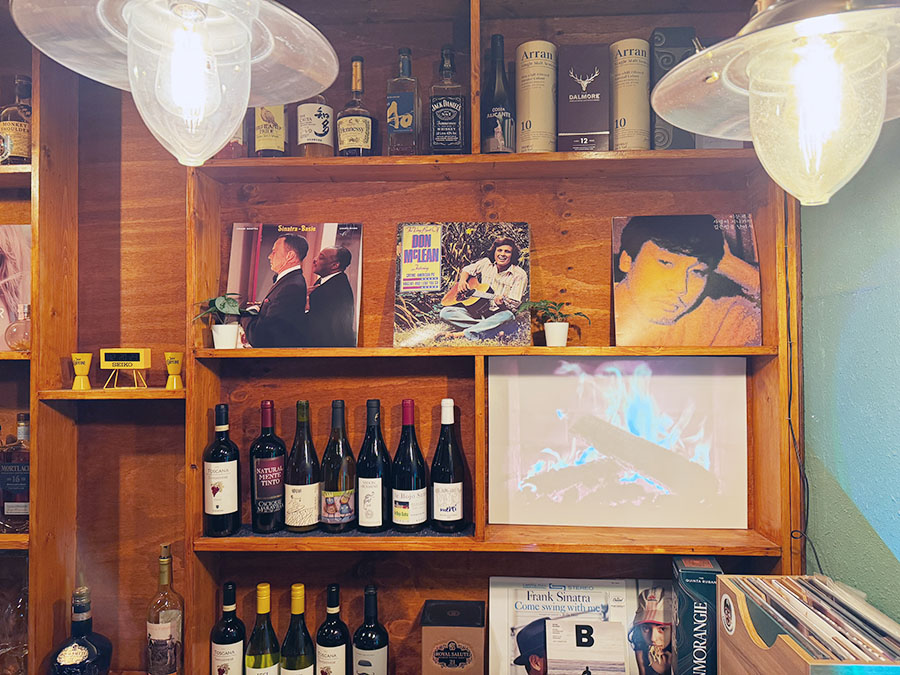 그리고 곳곳의 주인장의 취향이 잘 녹아 있는 것 같네요. 선반에 주류들 병이 나열되어 있는 것도 분위기가 독특하고, 뭔가 이국적이라서 해외여행을 온 것 같은 착각도 듭니다.