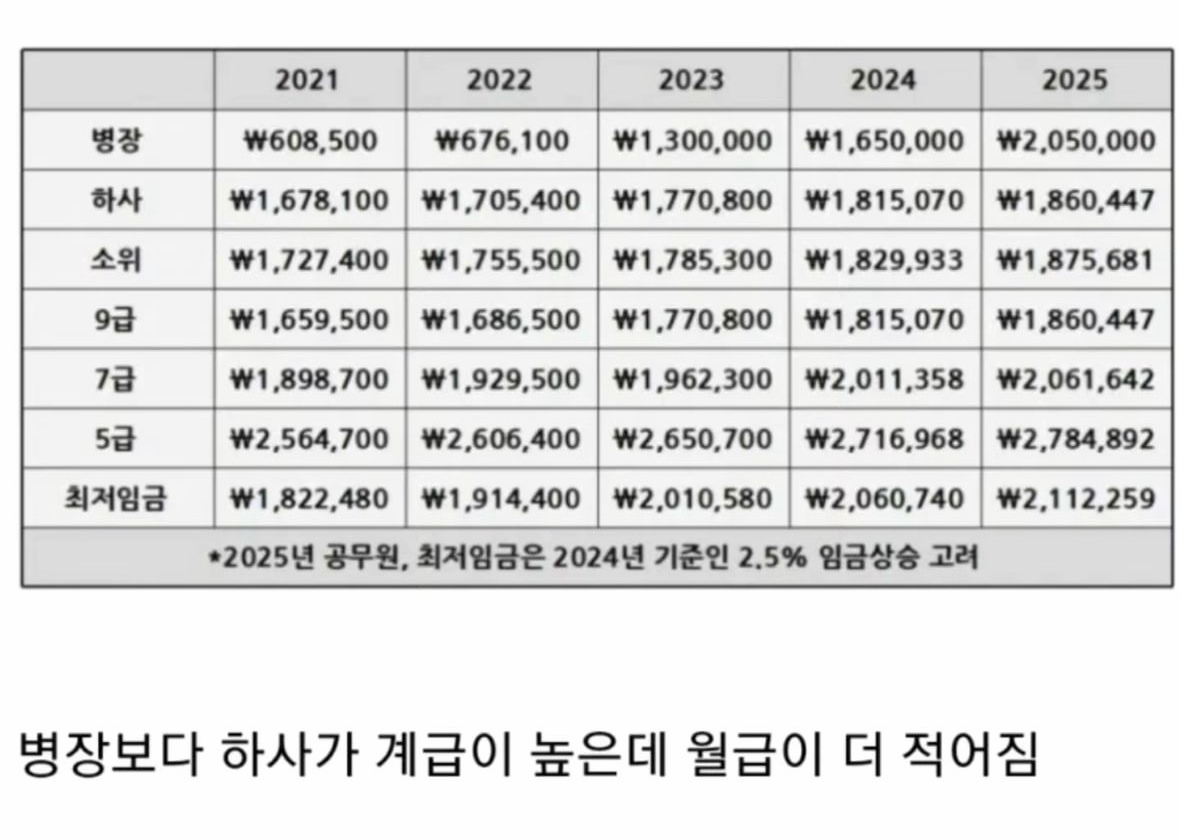 심지어 인터넷에서 2025년 군대 봉급표도 봤는데...