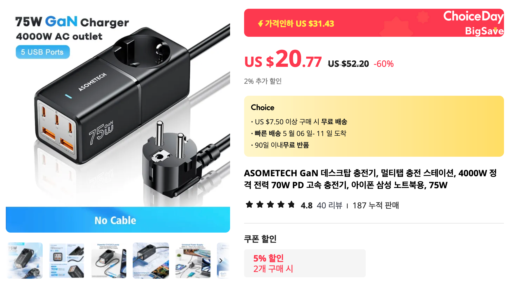 집에 하나 정도 있으면 좋은 USB 전원 어댑터 연장성 및 3개의 USB-C, USB-A 멀티 충전 어댑터 입니다. 75W 출력 모델인데 디자인도 좋네요 ㅎㅎ