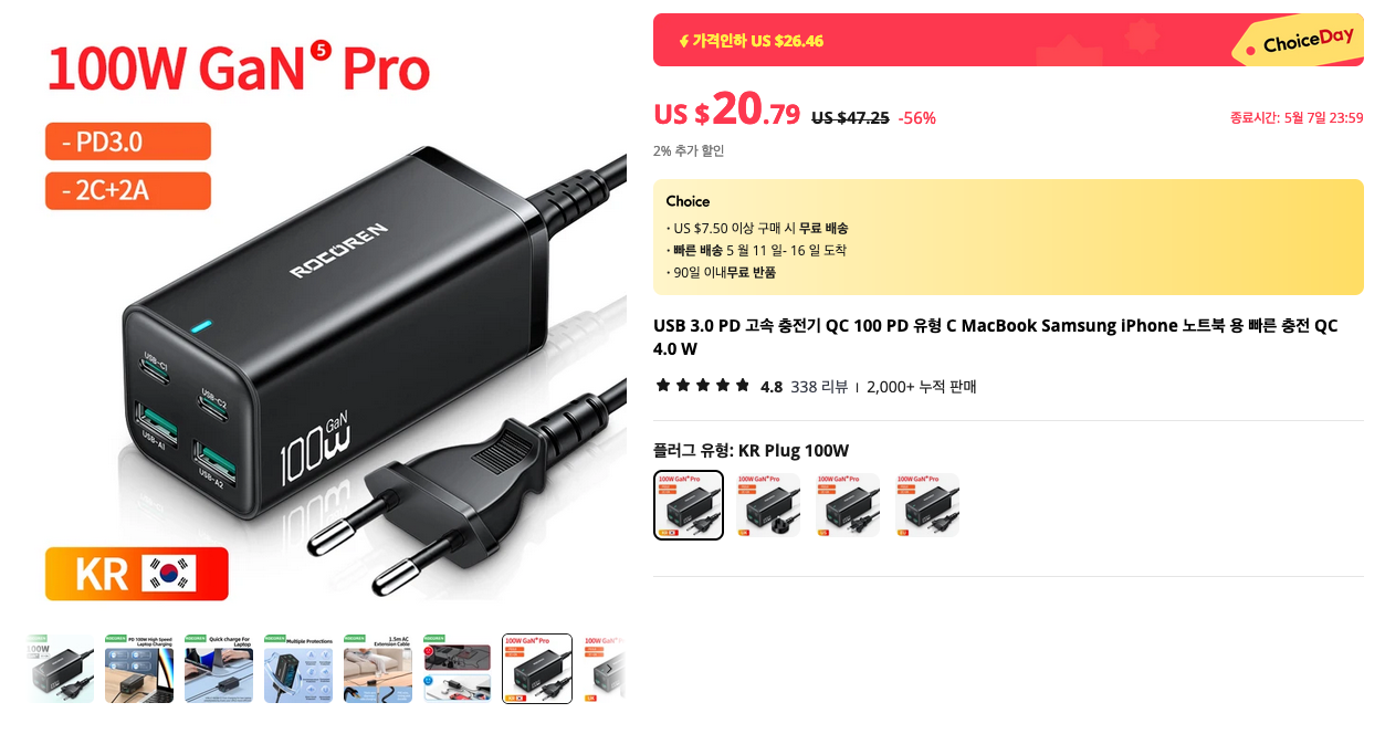 KR 한국형 플러그로 나온 로코렌 100W 멀티 GaN 충전기 입니다. 이거 하나면 맥북도 충전하고, 스마트폰도 충전하고... 거의 만능이죠. 여행 갈 때 8자 플러그만 추가로 가져가도 잘 쓸 것 같은 멋진 아이템 입니다. Baseus 제품보다 더 좋다고 입소문을 타고 있는 제품입니다.