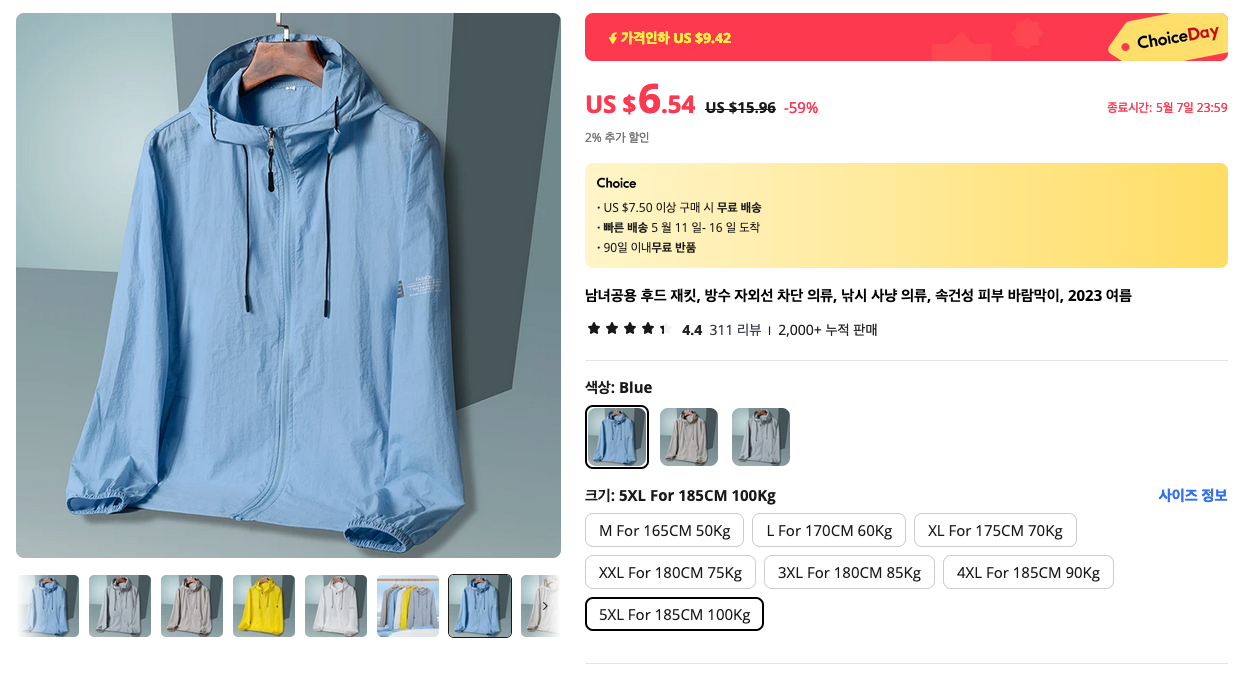 자외선 차단 바람막이 입니다. 생각보다 큰 치수로 주문해야 하다고 하네요. 여름에 뜨거운 햇살을 막아주거나 에어콘 바람을 막아줄 긴팔 바람막이가 필요할 때가 많은데, 이 제품이 딱 좋아보입니다.
