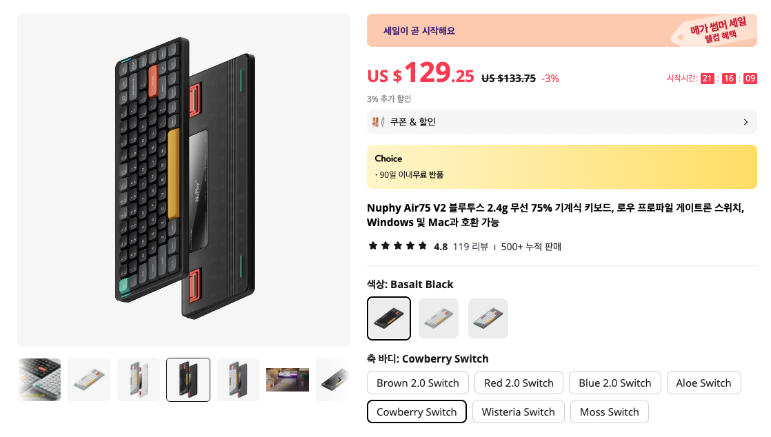 꽤 쓸만한 기계식 키보드 입니다. 저는 Nuphy Air 시리즈를 여러개 사용하고 있는데, 알리에서 할인 할 때 사는 것이 가장 가성비가 좋습니다.
