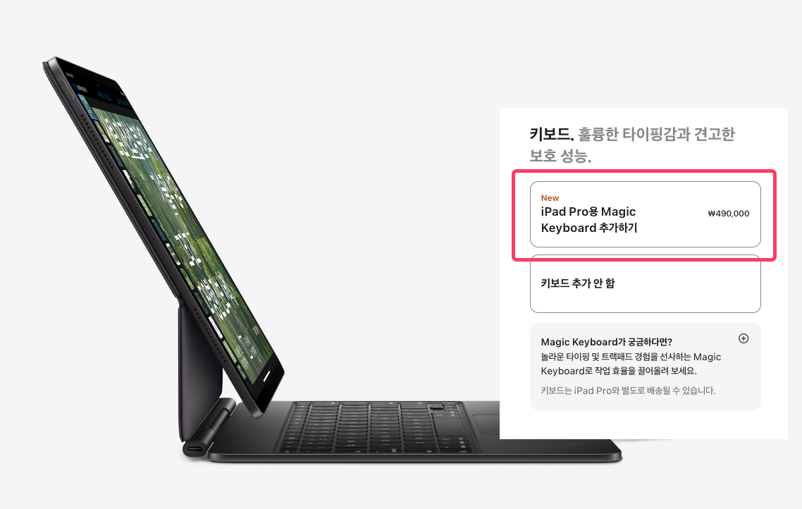 이번에는 매직 키보드 입니다. 2024년 매직 키보드는 꽤 많은 부분들이 개선되어 나왔죠. 그래서 구 버전과 호환도 안되는 것으로 알고 있는데요. 정말 자비 없는 가격, 49만원 씩이나 합니다.