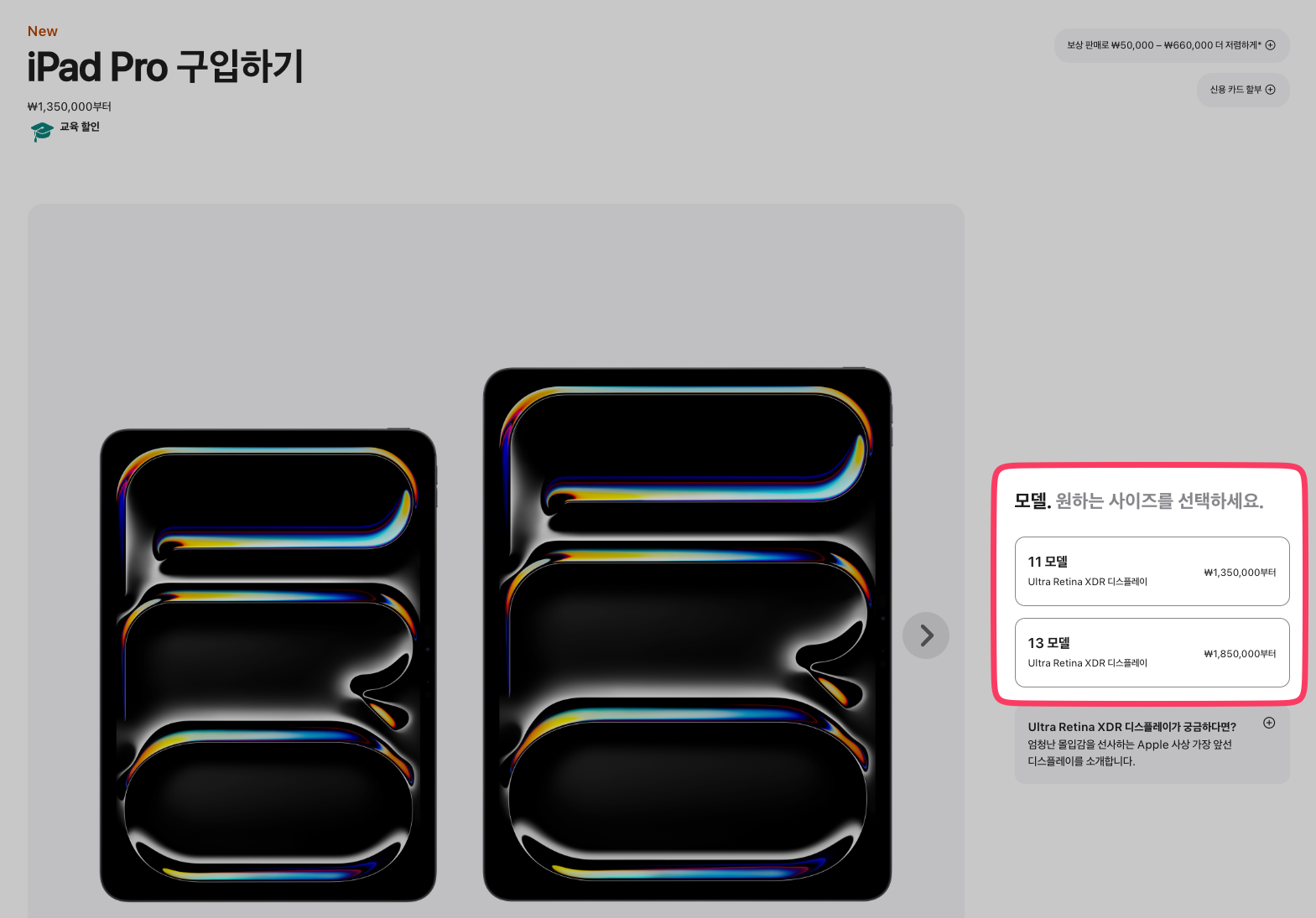 M4 탑재한 아이패드 프로, 교육할인 애플스토어에서 구입하면 얼마일까?