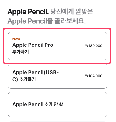 애플 펜슬은 못참죠. 애플펜슬2는 더 이상 사용할 수 없고, 애플펜슬 프로를 구입해야 합니다. 여기서 18만원이 추가가 되네요.