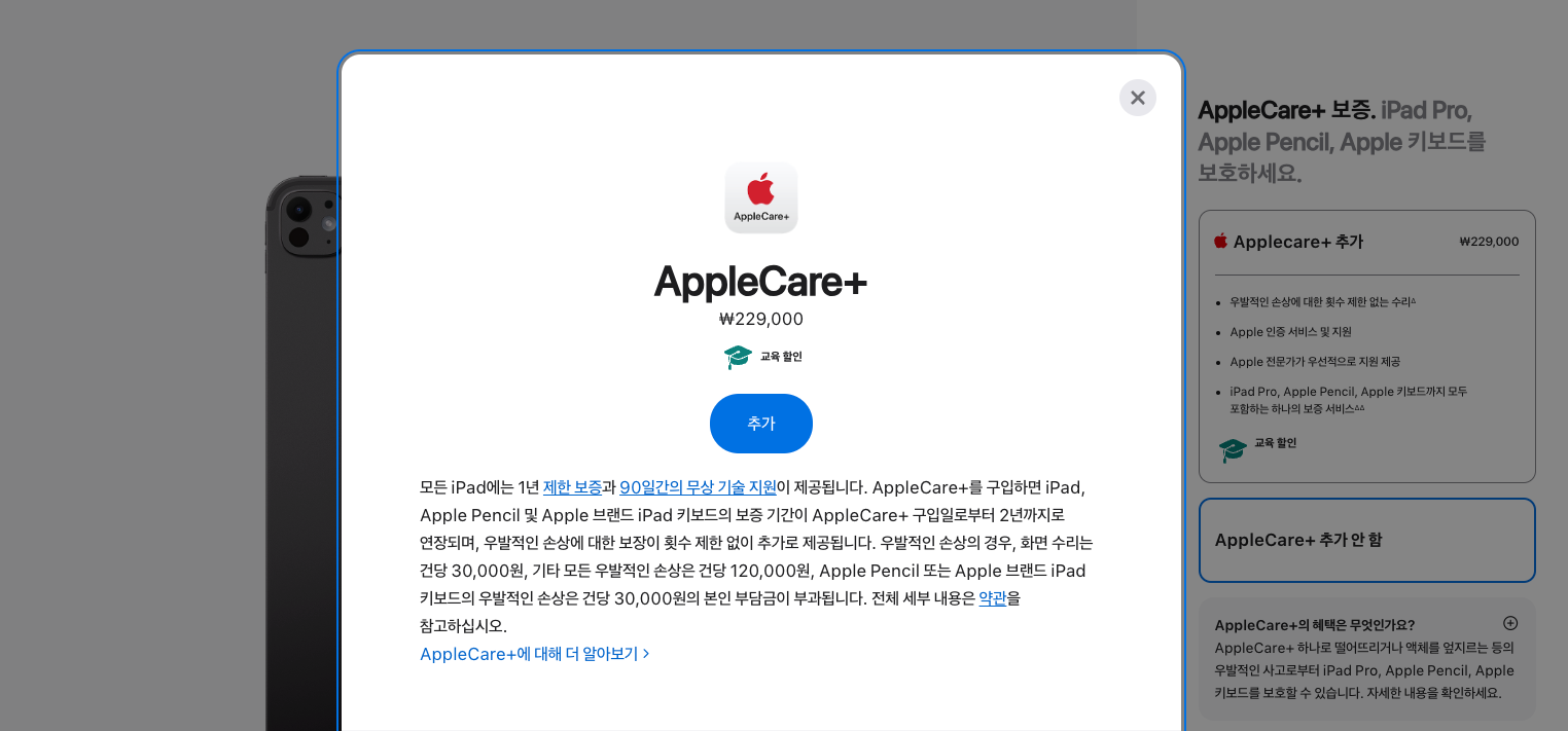 애플 케어는 22만 9천원이네요. 그럼 M4칩을 탑재한 신형 아이패드 프로 13인치 모델을 학생할인을 받아 구입하시는데 어느정도 도움이 되셨길 바랍니다. :)
