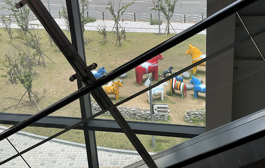 바깥에는 스웨덴의 '달라호스' 조형물이 보입니다.
