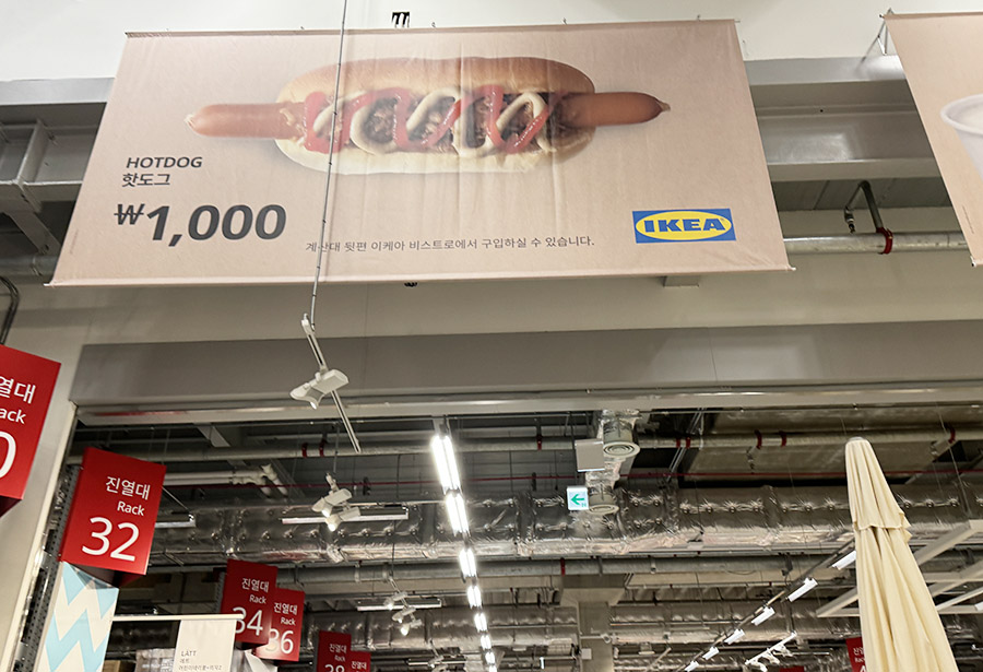 쇼핑을 마치고 이케아 오면 빼놓을 수 없는 핫도그를 먹으러 갑니다. 1000원에 팔고 있어요. 요즘 같은 고물가에 믿을 수 없는 가격!