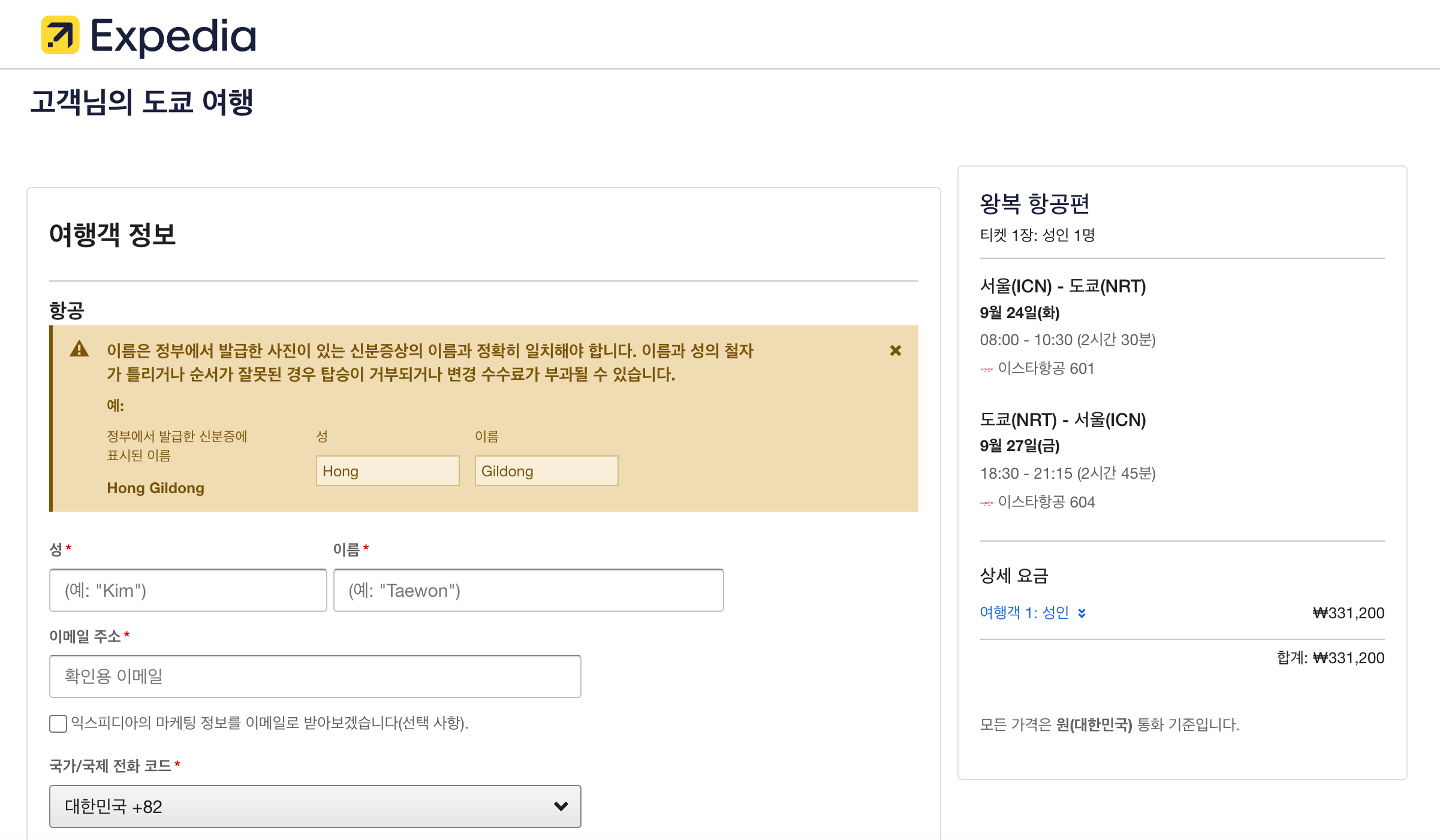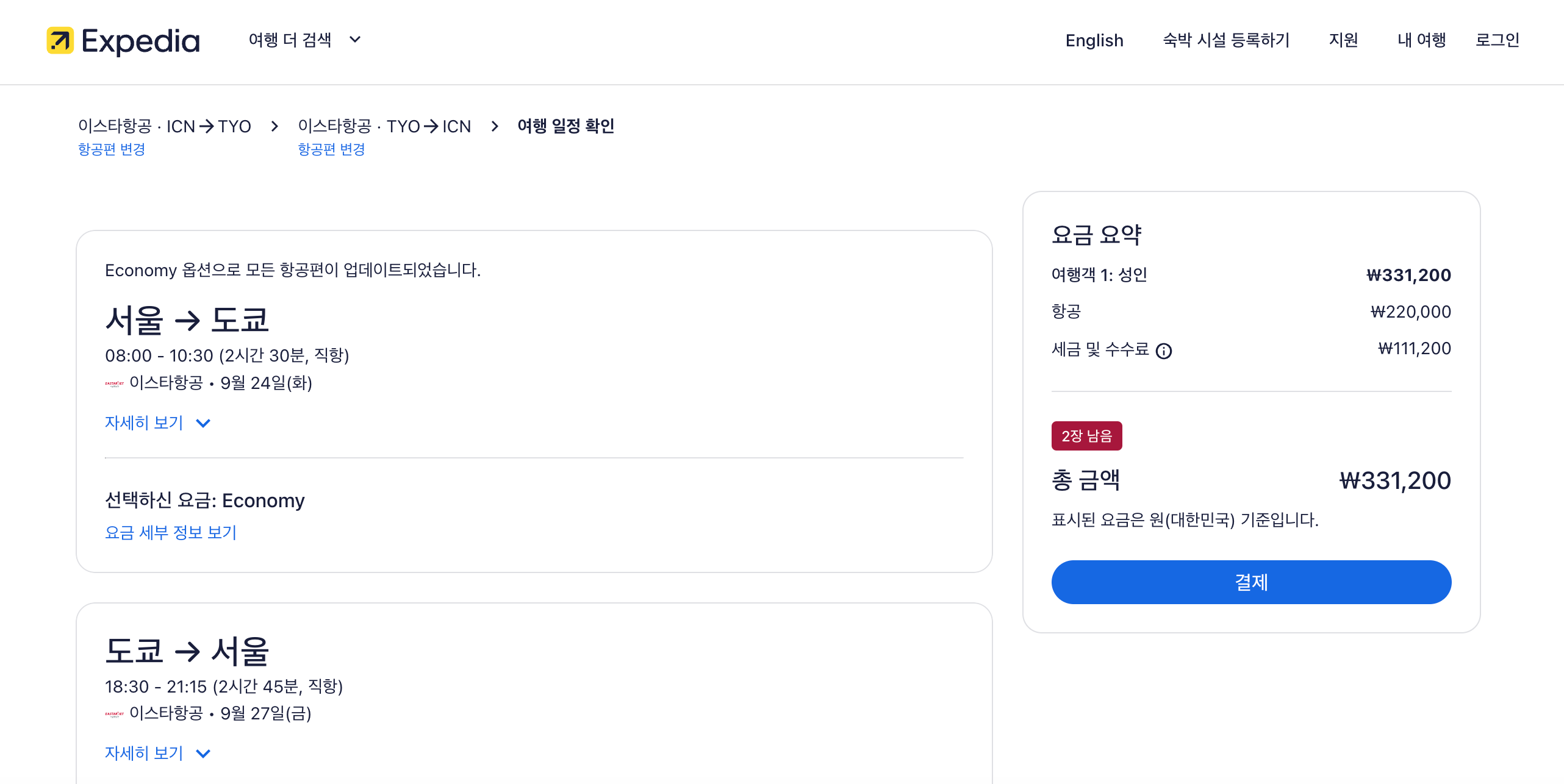 익스피디아로 최저가 항공권 예약 해보기