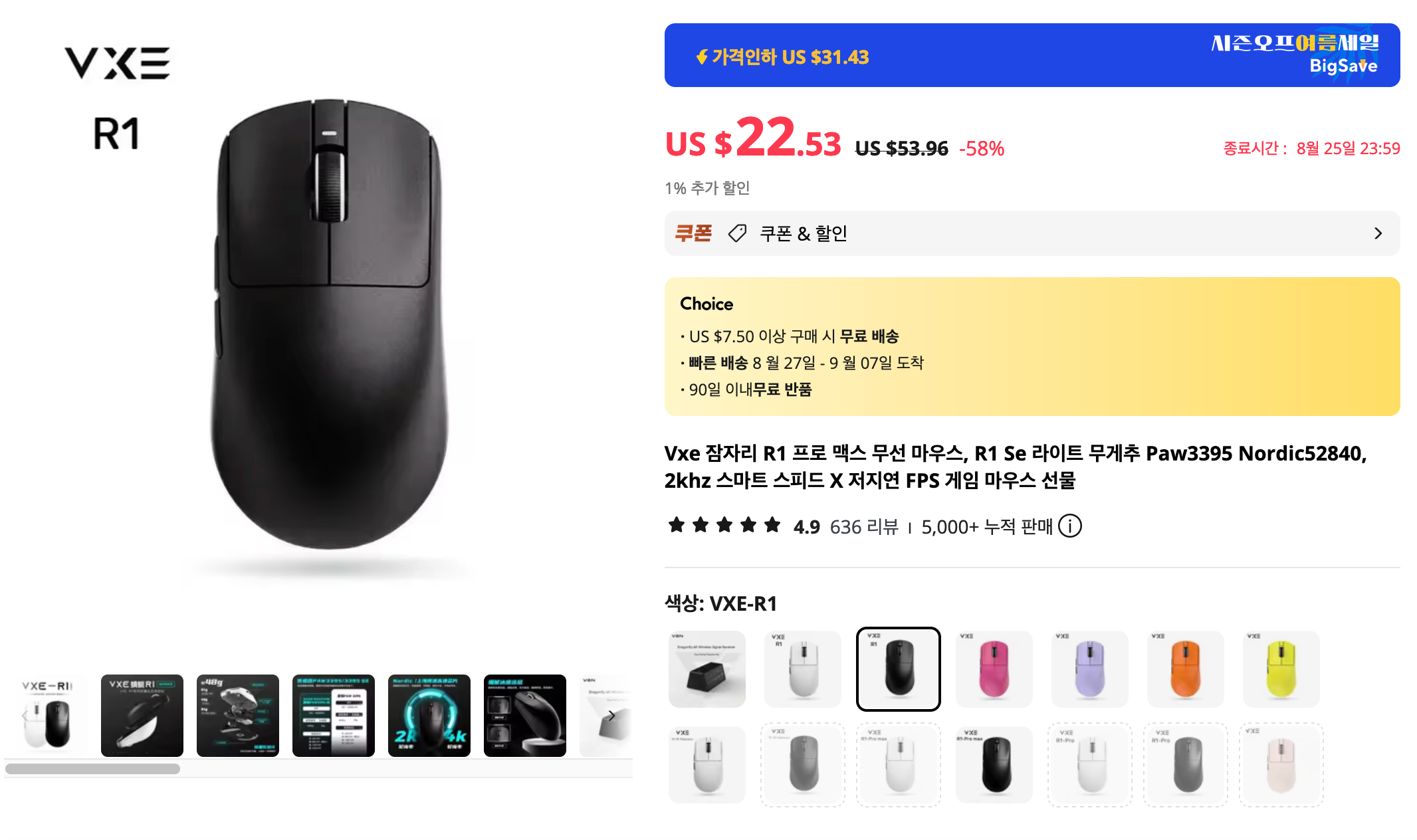 가성비로 로지텍 지프로 또는 지슈라를 압살한다고 알려진 VXE R1 시리즈 마우스 입니다. R1시리즌 조금씩 차이가 있으니 잘 알아보시고 마음에 드시는 것을 구입하시면 되겠습니다. 3~5만원 대에서 이만한 성능을 가진 무선 게이밍 마우스를 찾기 어렵습니다.