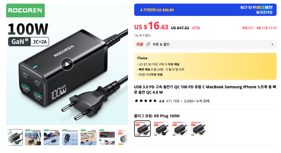 Rocoren 100W 멀티 충전 어댑터
