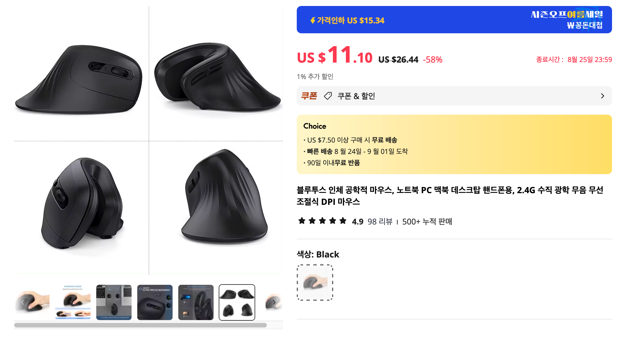 Seenda에서는 독특한 형태의 버티컬 마우스, 볼 마우스를 많이 생산하는데... 저는 손목 건강을 관리하기 위해 평소에는 버티컬 마우스를 사용하고 있습니다. 요것도 사용해보고 싶어서 구입했네요. 가격도 국내에서 사는 것 보다 저렴하니까요.