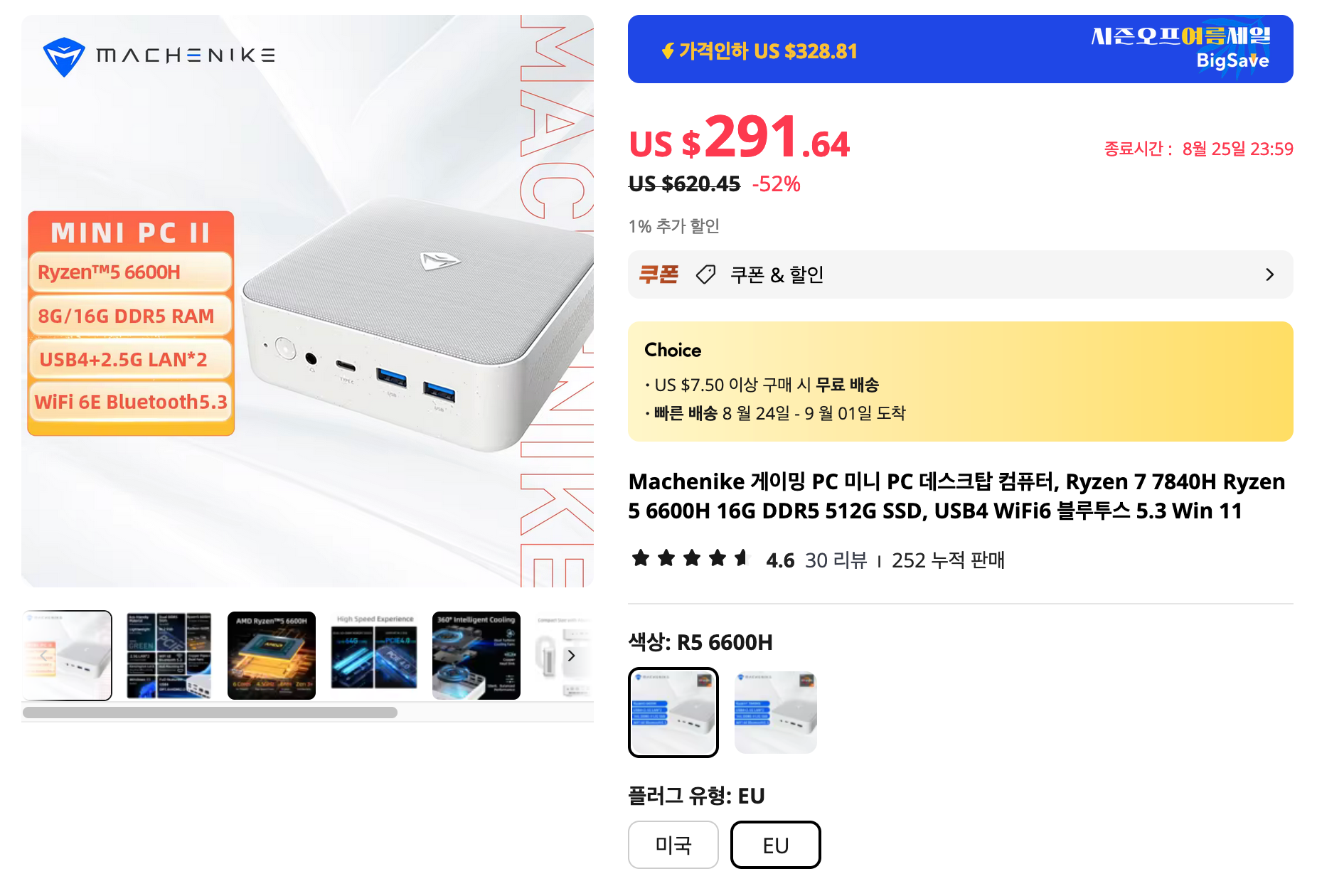 가장 먼저 AMD 라이젠 6600H를 탑재한 미니PC 입니다. 왠만한 게이밍도 가능하죠. 할인된 가격이 꽤 좋게 나온 것 같습니다. 간단한 게임을 즐기는 용도라면 6600H이면 충분하더군요.