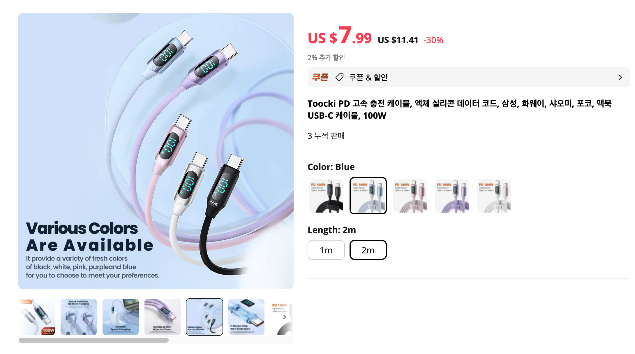 전자기기를 충전하려면 케이블이 필요한데 투키 Toocki 리퀴드 실리콘 케이블은 제가 사용해본 것들 중 최상입니다. 할인 가격 맞추기 위해서 여러개 담기도 좋죠 ㅎㅎ