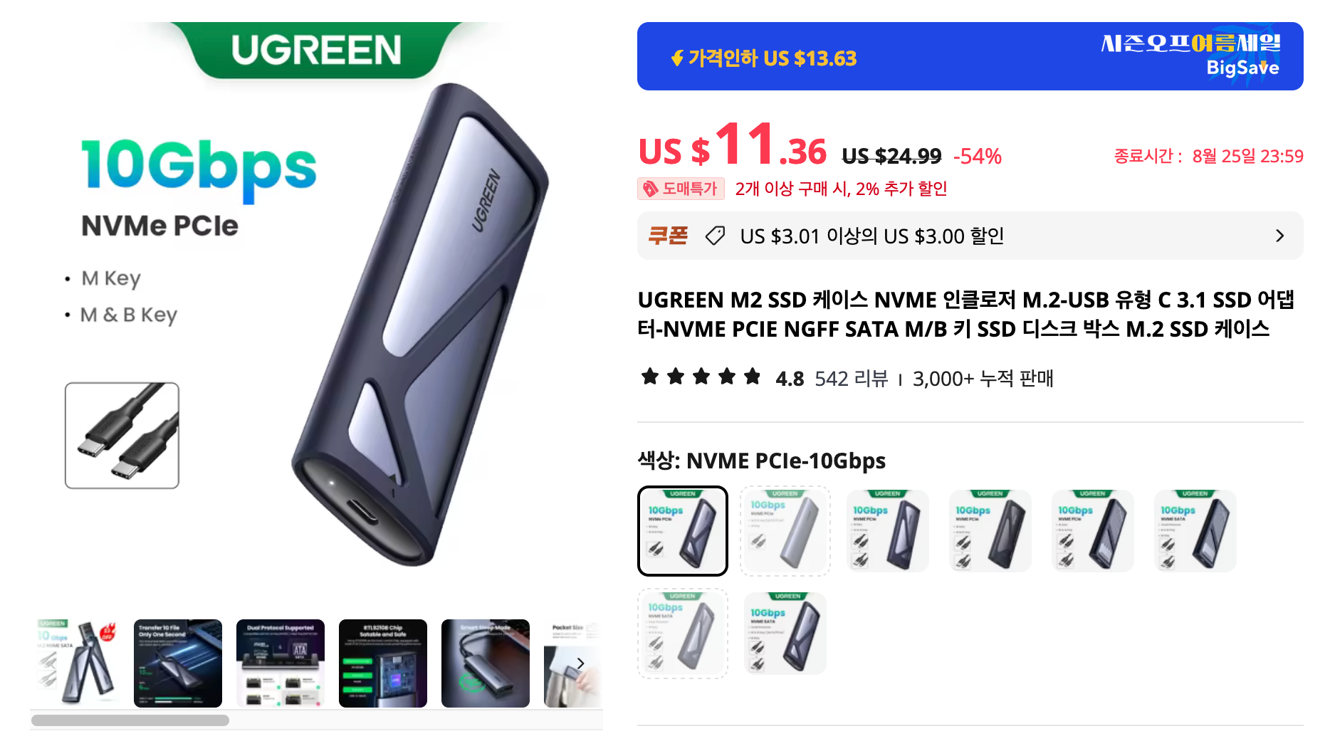 SSD 많이 쓰시죠? 제 경우에는 외장 하드처럼 쓰기 위해 SSD 케이스를 구입합니. 이번 쎄일 기간에 구입하면 꽤 저렴하게 구입할 수 있어서 몇개 구입해두었습니다.