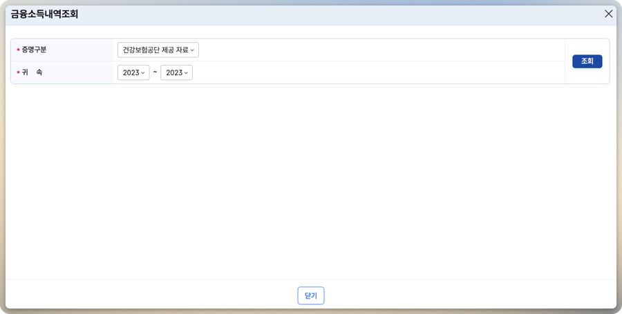 건강보험공단에서 제공하는 직전년도의 금융소득을 뽑아볼 수 있습니다.