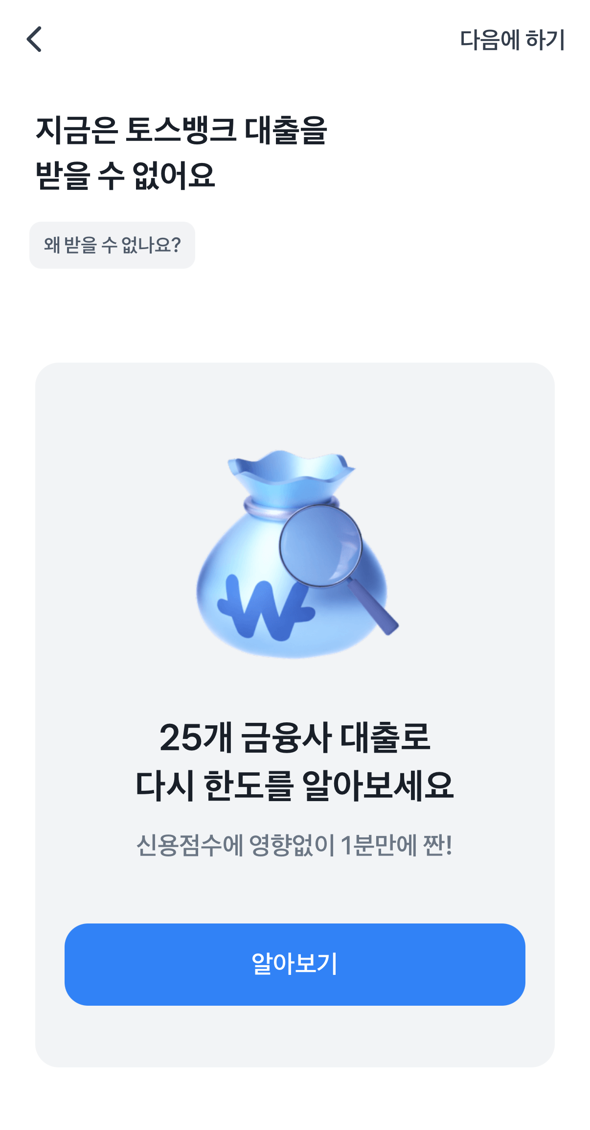 여담이지만 토스뱅크에서도 대출 상품을 조회해 봤는데...