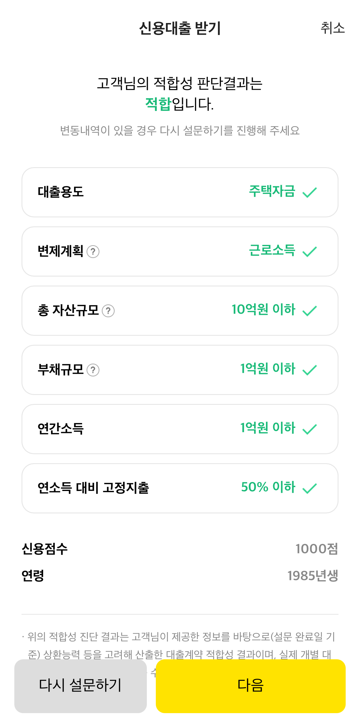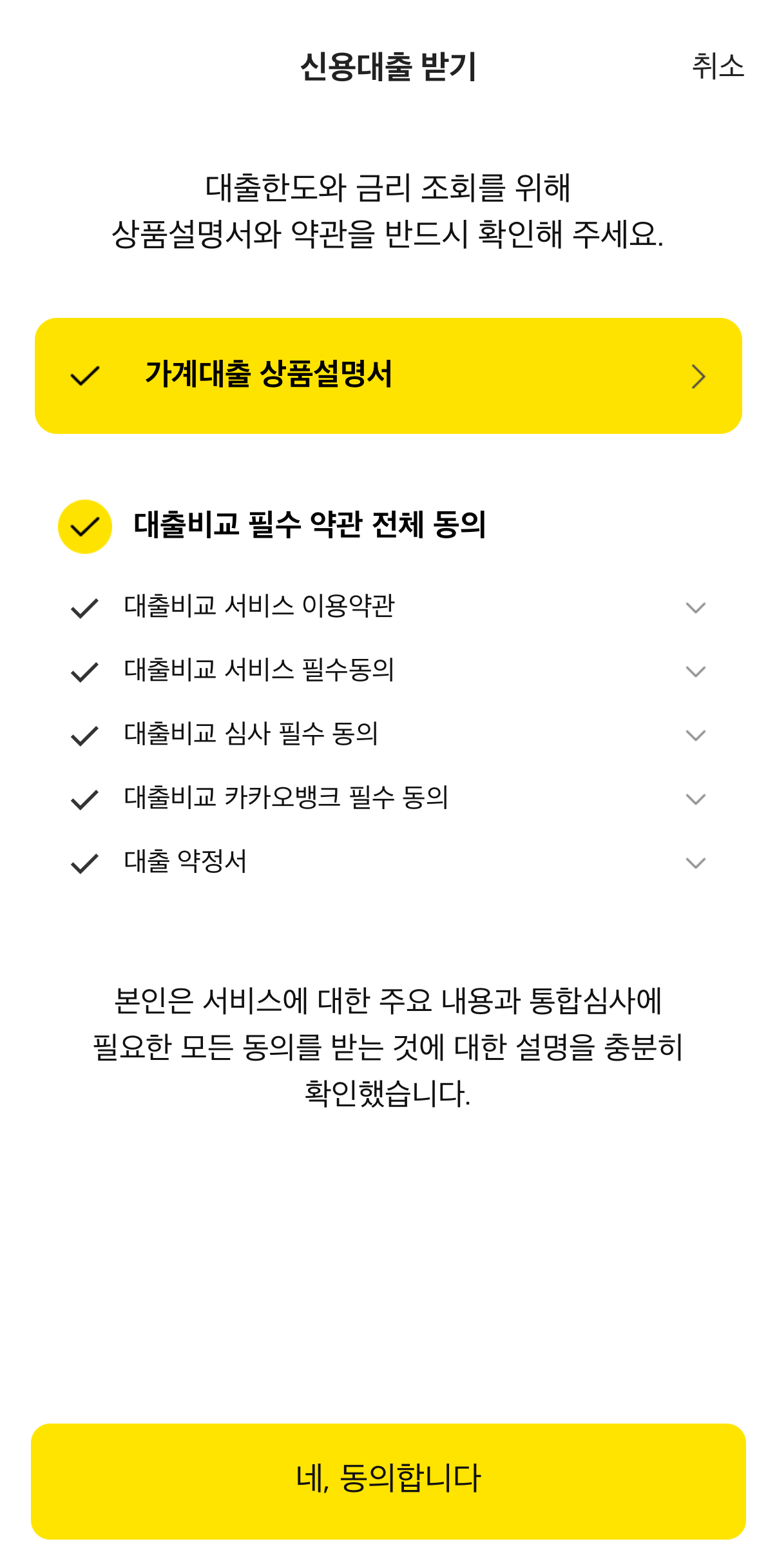 카카오뱅크에서 대출 상품을 조회해 보았다.