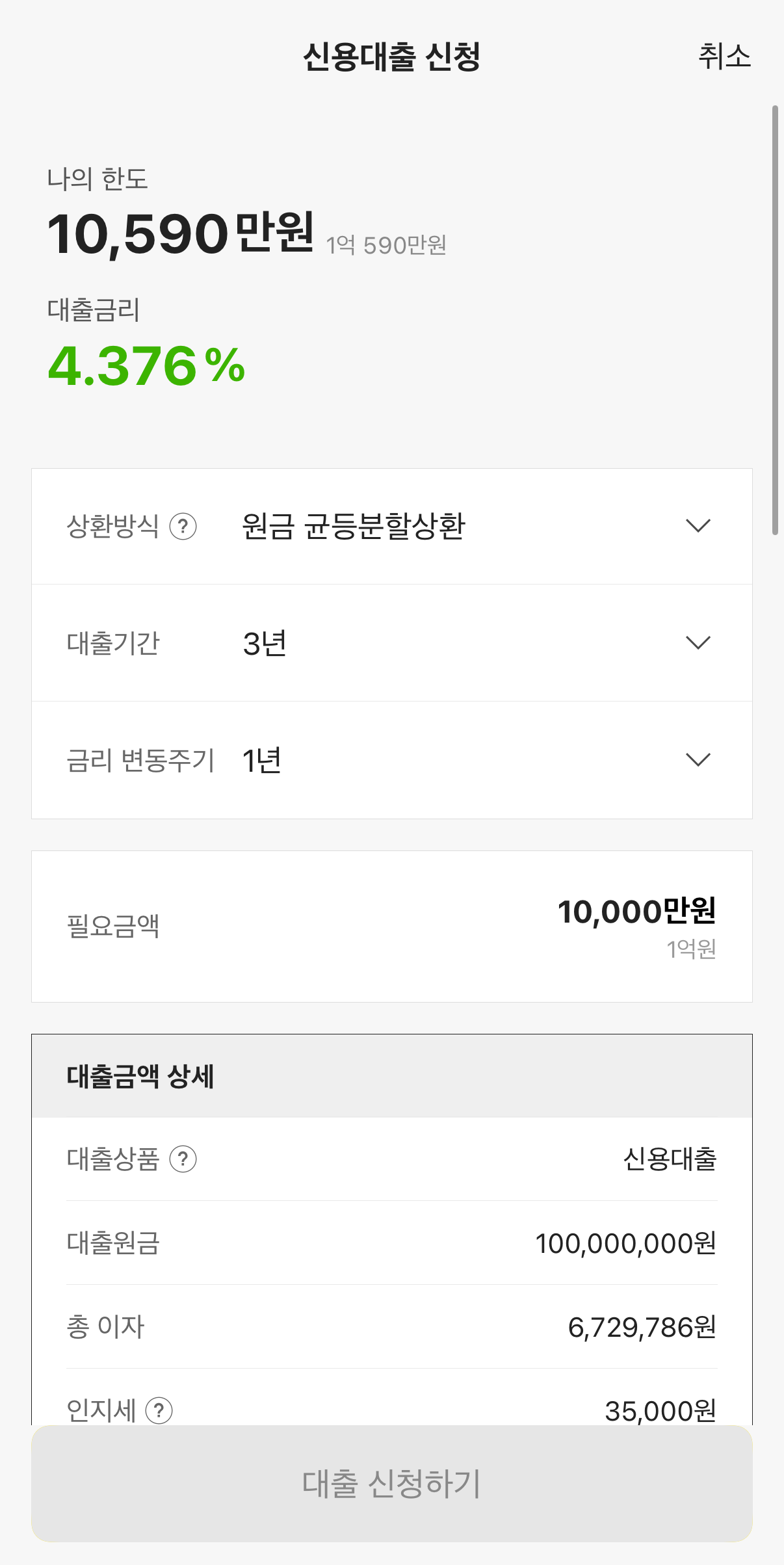 카카오뱅크 신용대출 받기 시도! 1억 대출 가능할까?