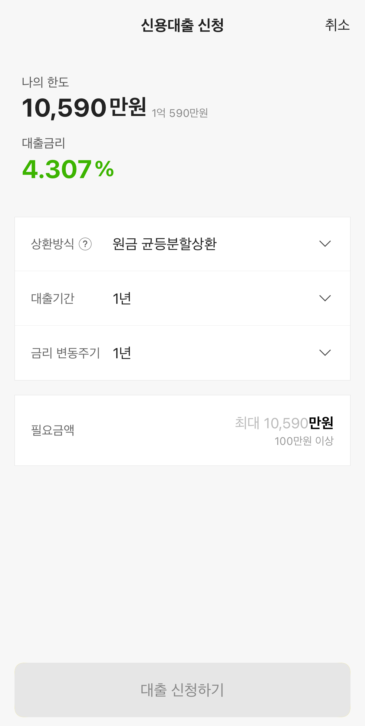 4.307%에 1억 590만원까지 대출이 가능했다.