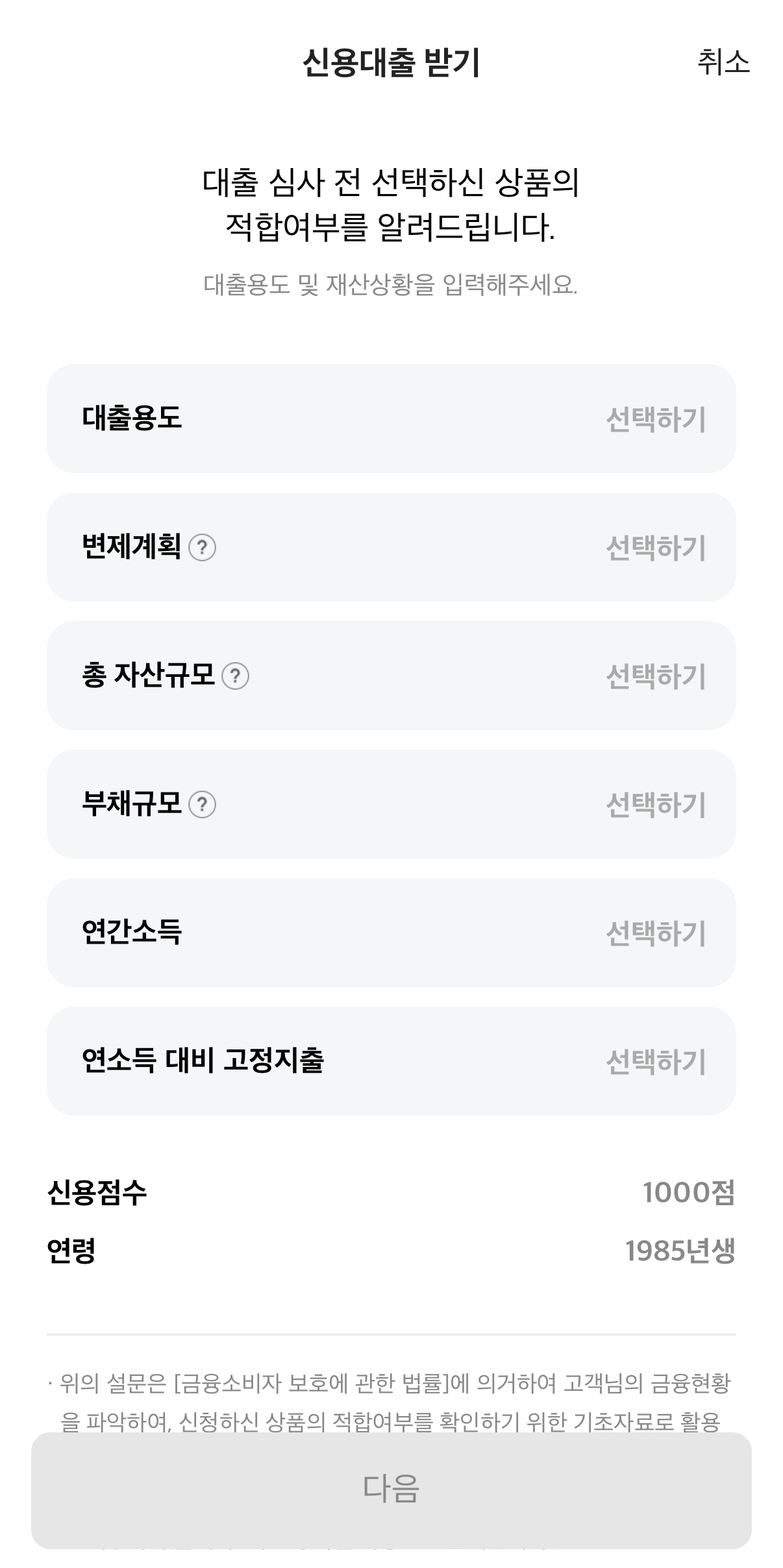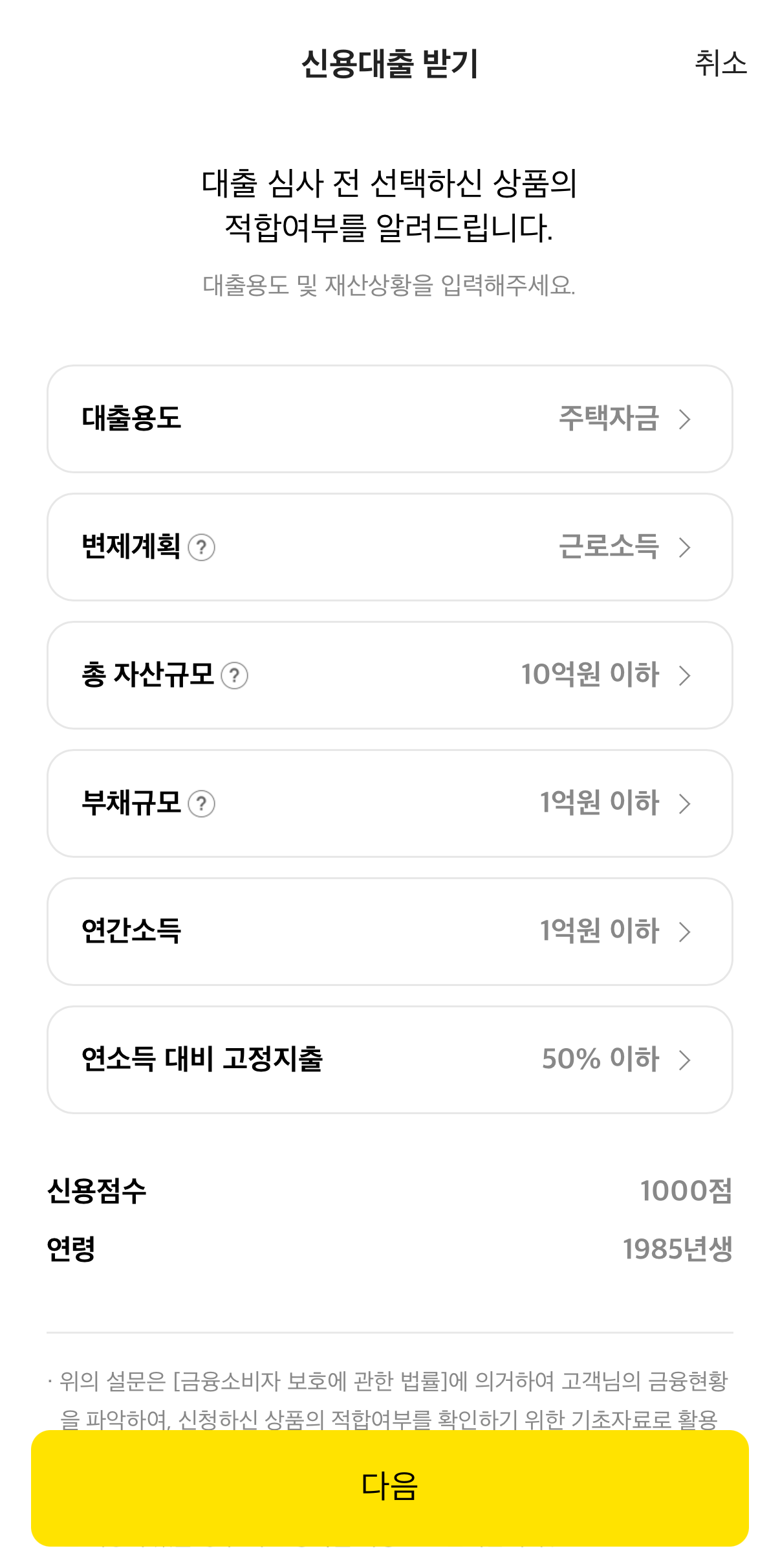 카카오뱅크에서 대출 상품을 조회해 보았다.