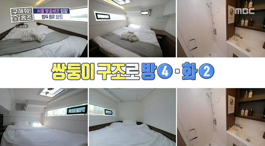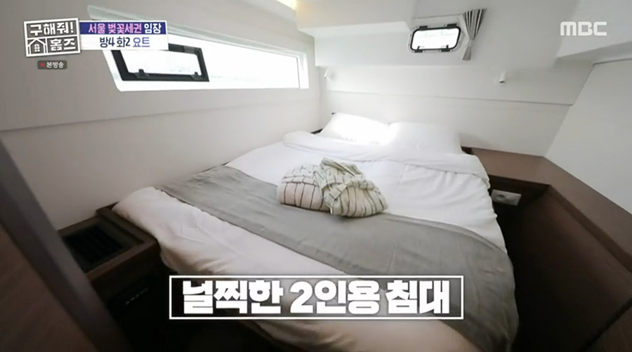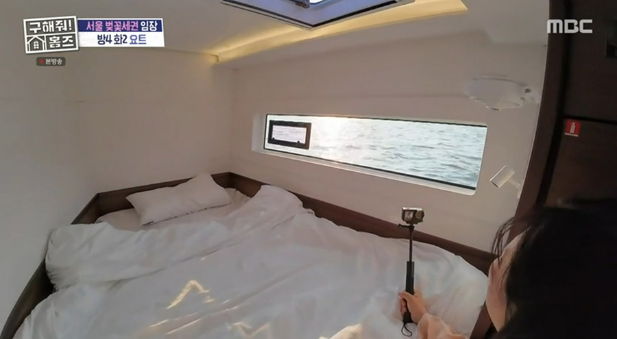방송에서도 요트 밑에 침실이 이렇게 숨겨져 있는데... 여기서 창밖을 바라보면 물위에 있다는 것이 실감나게 소개를 해주더군요.