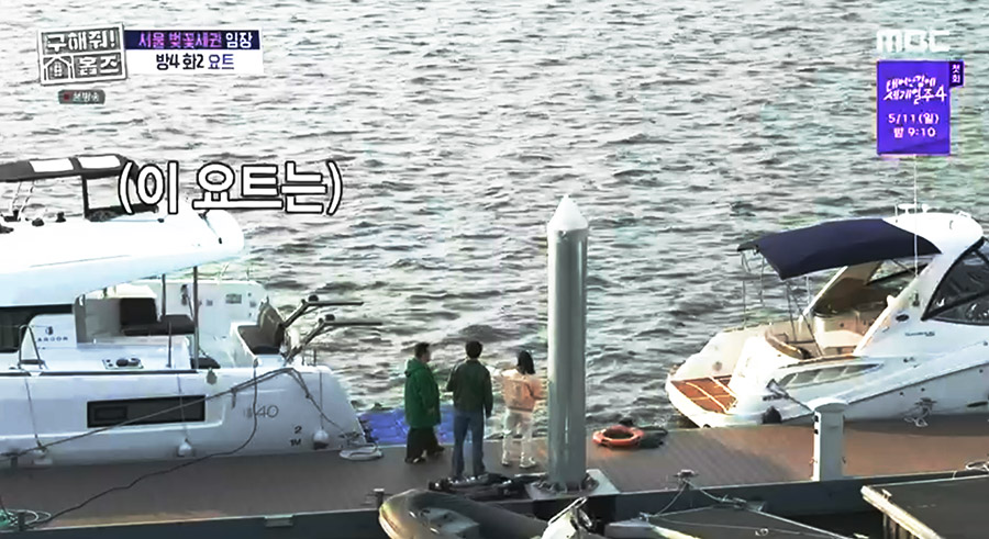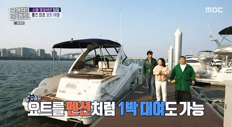 예전에 봤을 때는 의뢰자가 원하는 집을 찾아주는 그런 내용이었는데... 이번엔 예전에 예고편에서 봤을 때 뭔가 구해줘홈즈 최초로 요트 매물(?)을 보여준다는 걸 잠깐 본것 같은데... 출연진들이 옆에 있는 요트부터 보여주는데 꽤 흥미롭더군요. 한강에 있는 요트를 빌려서 숙박을 할 수 있다는 것!