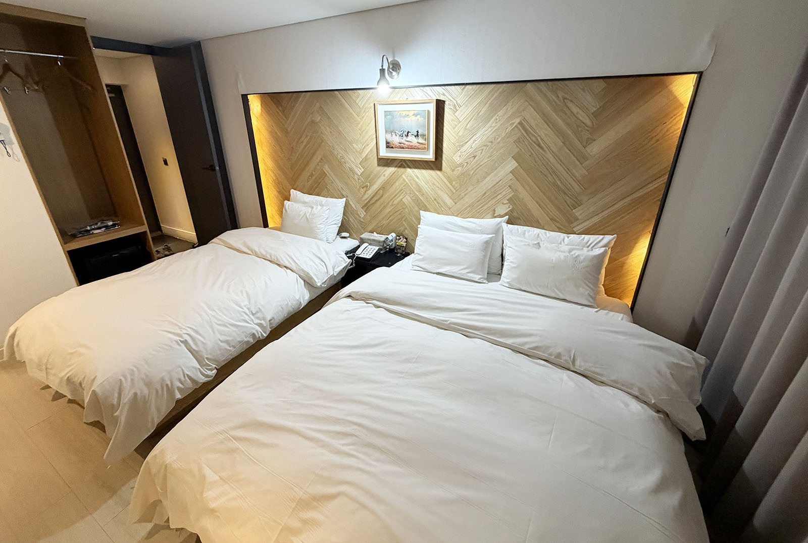 더블 베드와 싱글이 있는 방으로 배정을 받았습니다. 브라운도트 호텔은 OTT를 즐기는 세대들을 고려해서 TV도 큰 것이 꽤 마음에 듭니다.