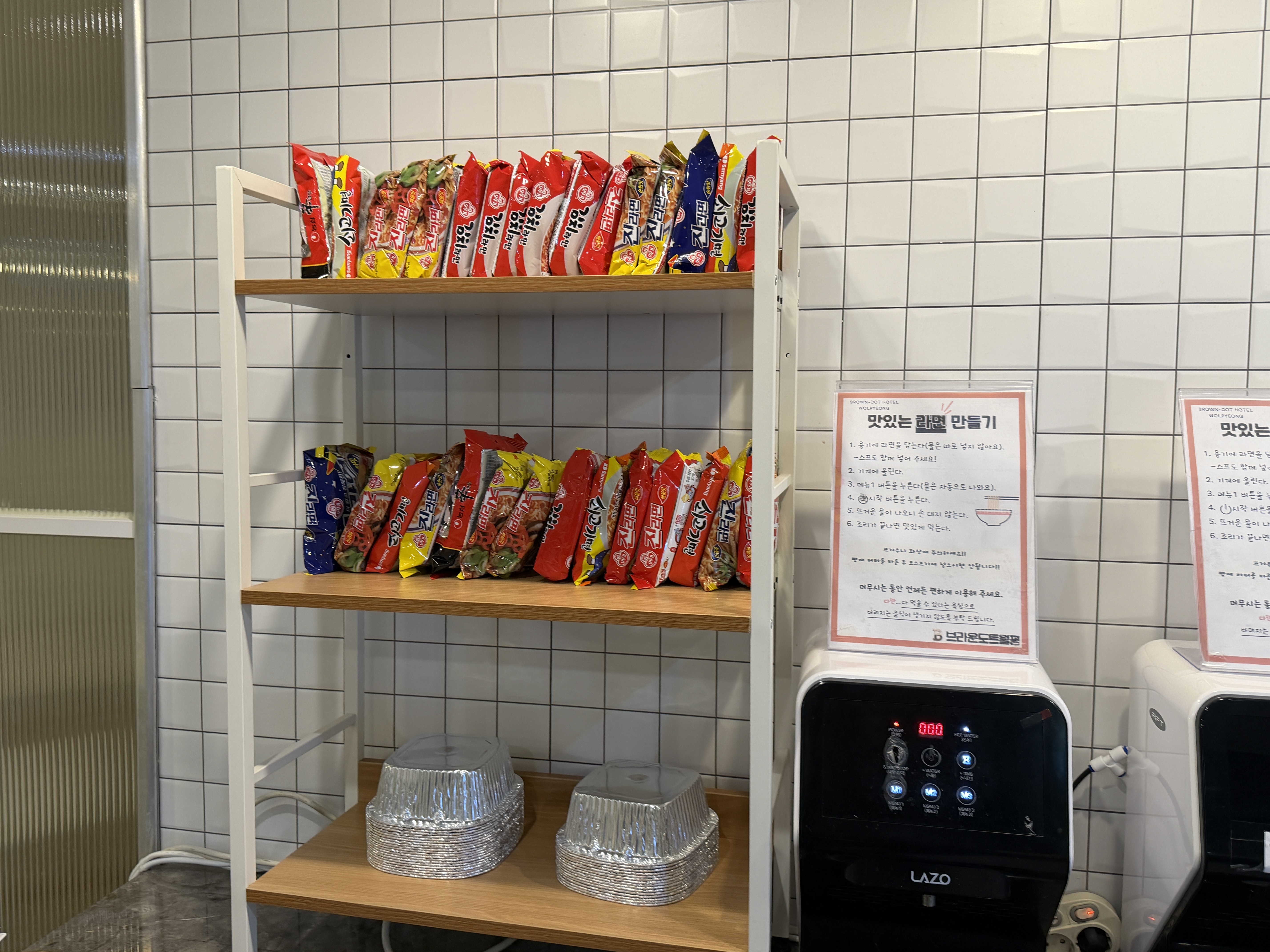 라면을 끌여 먹을 수 있고 말이죠. 간식도 있고... 대전에 가게 되면 다시 이곳에서 지내고 싶다는 생각이 들 정도로 잘 정리되어 있었습니다.