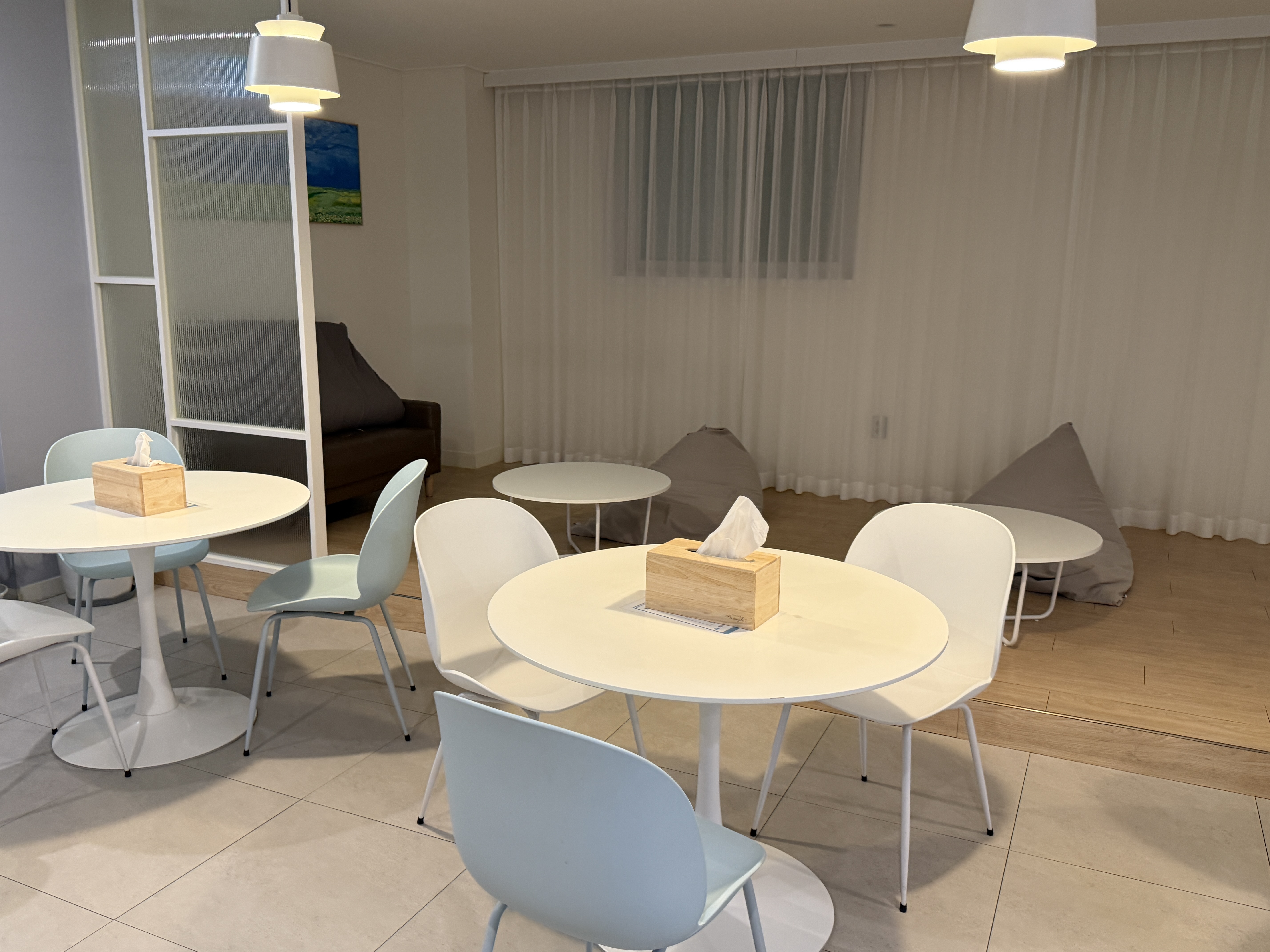 널찍한 휴게공간 스타일입니다. 제빙기도 있고 매우 좋았어요.